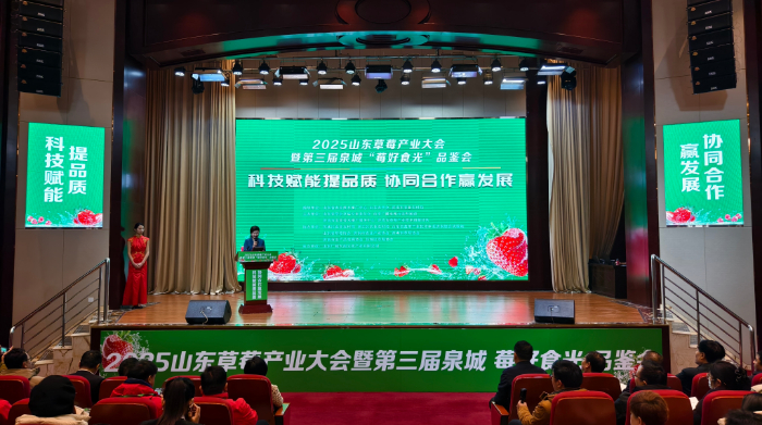 2025年1月10日至11日,由山東農(nóng)學(xué)會(huì)草莓專業(yè)委員會(huì)、山東廣播電視臺(tái)農(nóng)科頻道、濟(jì)南市農(nóng)業(yè)技術(shù)推廣服務(wù)中心共同主辦的2025年山東草莓產(chǎn)業(yè)大會(huì)暨第三屆中國(guó)•泉城“莓好食光”品鑒會(huì)在濟(jì)南召開(kāi)。本次大會(huì)以“科技賦能提品質(zhì) 協(xié)同合作贏發(fā)展”為主題,旨在搭建草莓生產(chǎn)全產(chǎn)業(yè)鏈的交流與交易平臺(tái),探討草莓產(chǎn)業(yè)前沿品種、技術(shù)及市場(chǎng)發(fā)展趨勢(shì)。山東省農(nóng)業(yè)農(nóng)村廳黨組成員、副廳長(zhǎng)楊武杰、濟(jì)南市農(nóng)業(yè)農(nóng)村局黨組書(shū)記、局長(zhǎng)孟帥、山東農(nóng)學(xué)會(huì)秘書(shū)長(zhǎng)張希軍等出席了會(huì)議。來(lái)自全國(guó)各地的草莓專業(yè)合作社、種植基地、采購(gòu)企業(yè)、農(nóng)資及設(shè)施企業(yè)負(fù)責(zé)人等300余人參加了此次盛會(huì)。