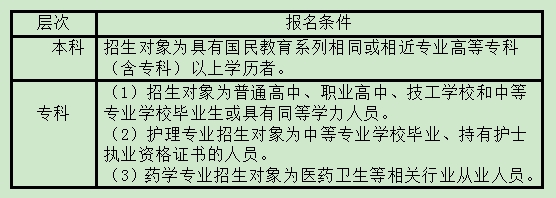 按照國(guó)家開放大學(xué)規(guī)定,2024年春季各專業(yè)報(bào)名學(xué)生年齡需年滿17周歲(2007年3月31日(含)前出生),并按所報(bào)考層次分別滿足下列條件: